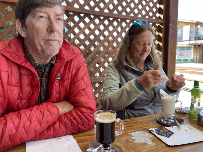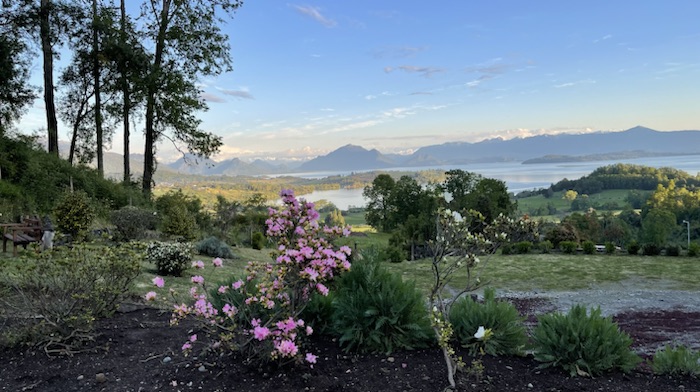 Today is All Saints’ Day in Chile. We couldn’t find a place open for coffee but we did find a mini mart where we got some pastries and took them back to our dome where we stayed the last two nights. Then we packed up and drove from Futrono to Ni-Newen Lodge near Pucón where we are tonight. Because of All Saints’ Day every cemetery we passed on our drive had cars parked for blocks around and lots of venders selling flowers.