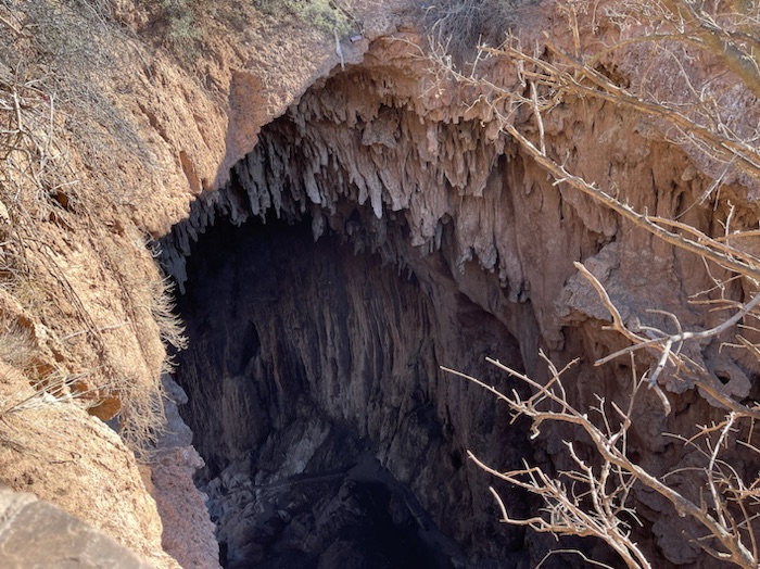 When we were ready to leave this morning our host encouraged us to walk up the road a bit to see the natural bridge. I don’t think I’ve ever seen a road go over a natural arch before.