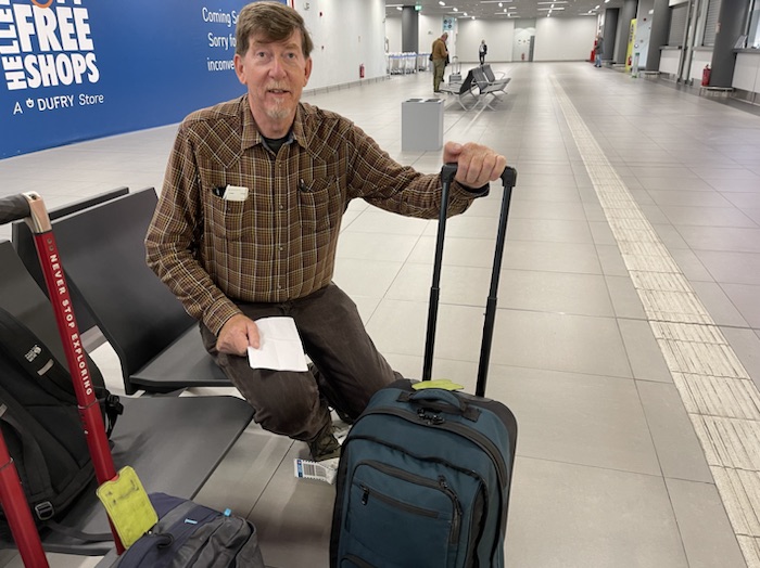 At the airport Duke got his bag and we took the shuttle to the rental car office.