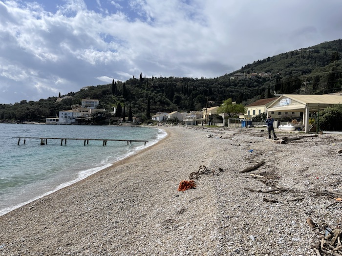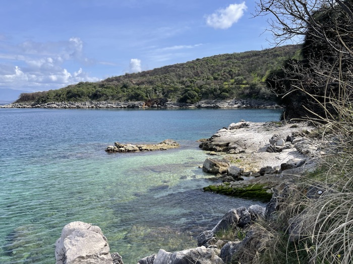 Today we explored a bit of Corfu. We drove north along the coast. There weren’t a lot of places to pull over but we found a beautiful placeto go down a side road. Across the water is the Albanian coast.