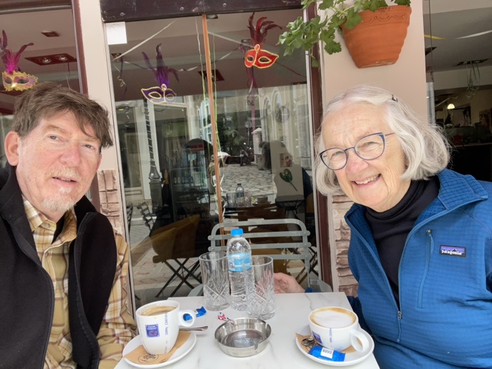 We found a cafe and had coffee. Each coffee came wish a small pice of dark chocolate.