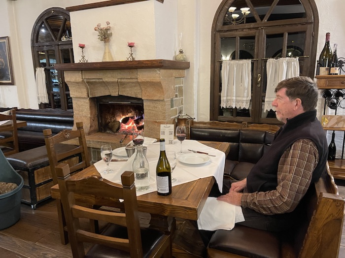 We had dinner at our hotel next to the fire. I had wild boar and Duke had steak. They were each excellent.