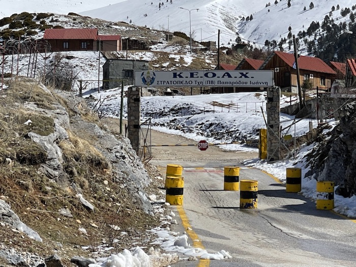 One of the owners of Hotel Dimatis where we are staying suggested we start our hike at an Army training facility on the mountain. They allow people to hike through the base if they show ID first. It was about an hour drive to get there.