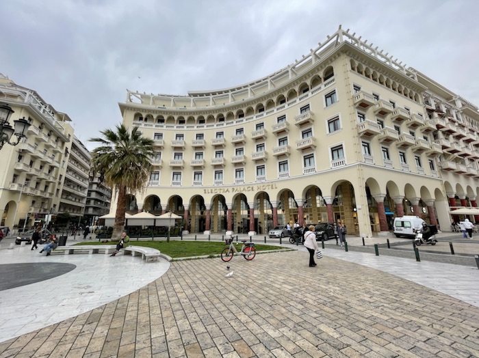 Today was the last day of our Greek road trip. We drove from Katerini to Thessaloniki and returned our rental car. Then we took a taxi to our Hotel on the central square, the Electra Palace.