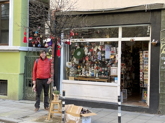 We spent last night at a very nice hotel, Hotel Ring, in Kyustendil, Bulgaria. For breakfast this morning we went out to find coffee and pastry. It was a beautiful morning and many stalls were setting up for the continuation of the Spring festival that we visited yesterday.