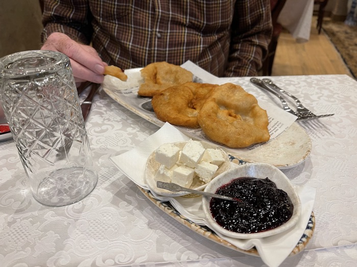 One of the traditional Bulgarian breakfast dishes that we have had several times on this trip is mekica. It is essentially fried flatbread. This morning at our hotel I ordered an omelette and Duke ordered mekica and we shared. It was so good.