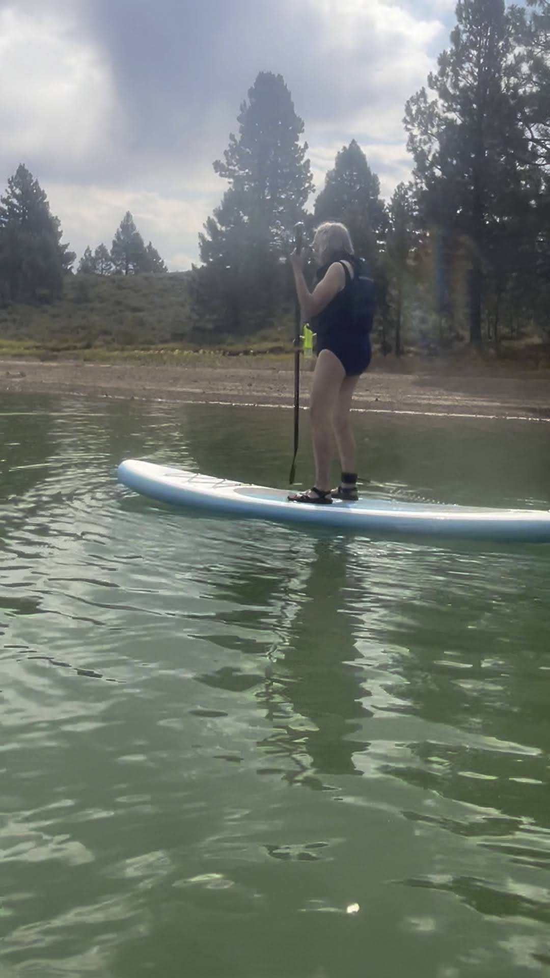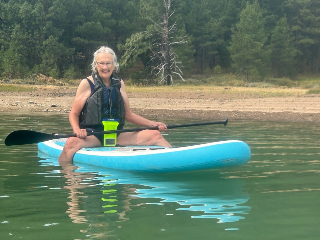 Bonnie and I went to a day long yoga retreat at Lake Davis. In preparation for the retreat Bonnie taught me how to ride a paddle board. Standing up was a challenge.