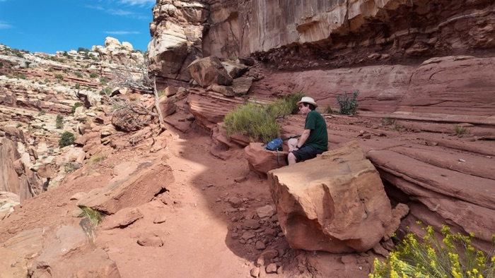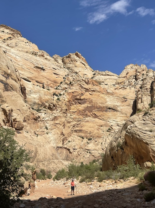Wednesday we hiked the Grand Wash Trail via the Northeast Trailhead in Capital Reef National Park. The trail goes along the wash. Eventually we hiked up towards Cassidy Arch. It’s an absolutely stunning hike. We got an early start so had quite a bit of shade going out. It was a very hot day. The sun was brutal at the end of the hike. All in all we hiked about 7 miles.