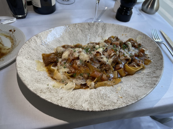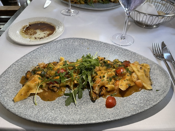 Beer at the end of the dayDuke’s Beef PappardelleMy seafood ravioli