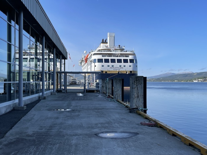 This morning we did some laundry in the no charge washing machines on the ship. While the machines were running we had breakfast. Then we packed, and disembarked from the Havila Polaris in Finnsnes.