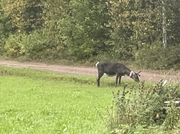 Today when we woke up we saw a reindeer grazing in the field behind the house we were staying in. We have been told that the collars identify to whom the reindeer belongs.