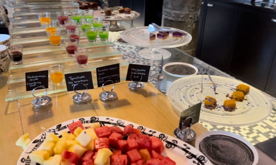 The Arctic Lights Hotel where we stayed in Rovaniemi is one of the nicest hotels of the trip and in my opinion their breakfast buffet was the absolute best of the trip. In addition to the standards, like eggs and croissants we had sparkling cloudberry-elderflower juice, moose sausage, Finish squeaky cheese and some devine pastries.