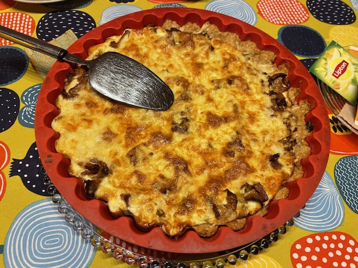 We have been eating interesting and delicious Finnish food. The mushrooms in this tart were foraged locally.
