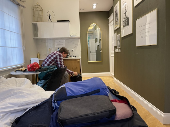 We had an early start. We got a 7:00 train in Ełk going to Gdańsk. The train was very comfortable. Around noon we arrived in Gdańsk and walked to our hotel.