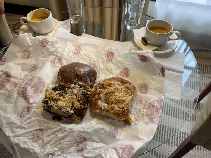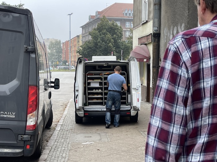 This morning we went for a second time to a bakery near our hotel. On both our visits they were loading bake goods into vans. I assume these were delivery vans. The smell of baking pastries was devine. We bought three pastries to take back to the hotel. They were sooooo good!