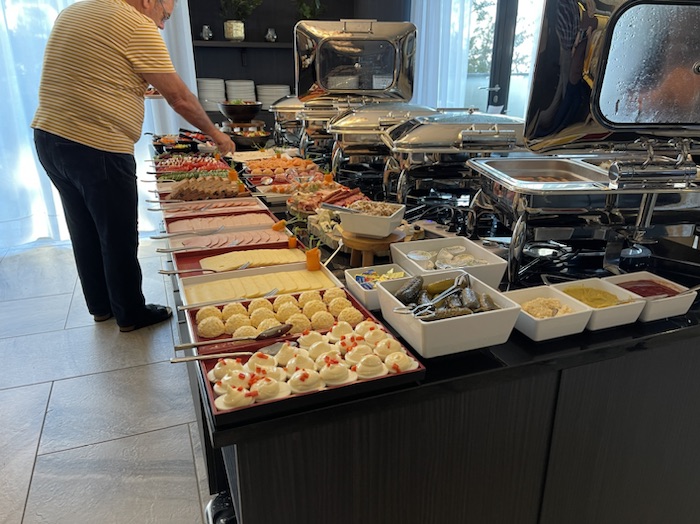 Breakfast buffets are one of the most interesting cultural experiences of traveling. The buffet at Baltivia Resort this morning was a perfect example. There were lots of foods we didn’t recognize like the scoops of what looked like maybe potatoes salad and others we don’t normally see at breakfast, like the big pickles. I tried some kind of liver sausage and onions which was very good.