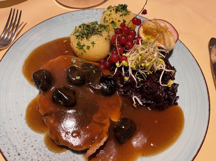 Breakfasts at Hotel Bernstein were great. Almost all our breakfast buffets have had pickled herring and salmon. The fish section on this morning’s buffet was especially good. I liked the look of the fish wrapped around a pickle but I didn’t try it. I did have some of the sour cream pickled herring.