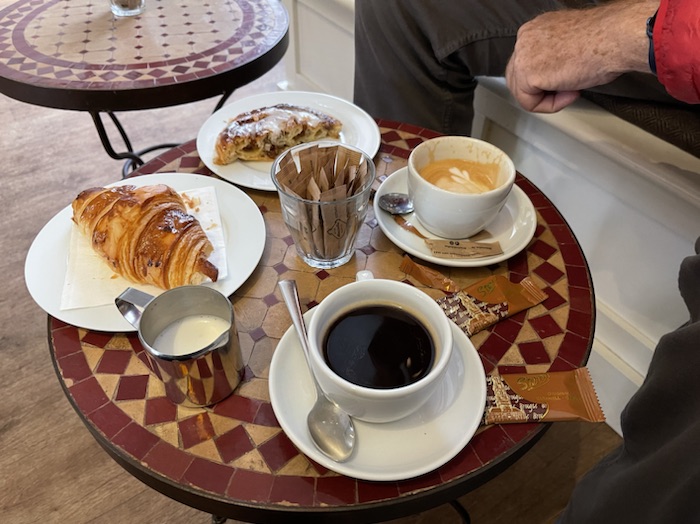 We had a busy day today. We went out and found a great place for coffee and pastry.