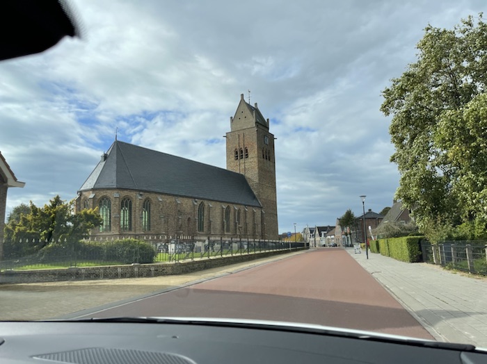 Next we went to the village of Minnertsga where one of my distant ancestors, Hendrick Epke Banta was born. The writing on the stone next to the door of the church says the tower was built in 1505. The drive through the villages and farmland to get there was fun.