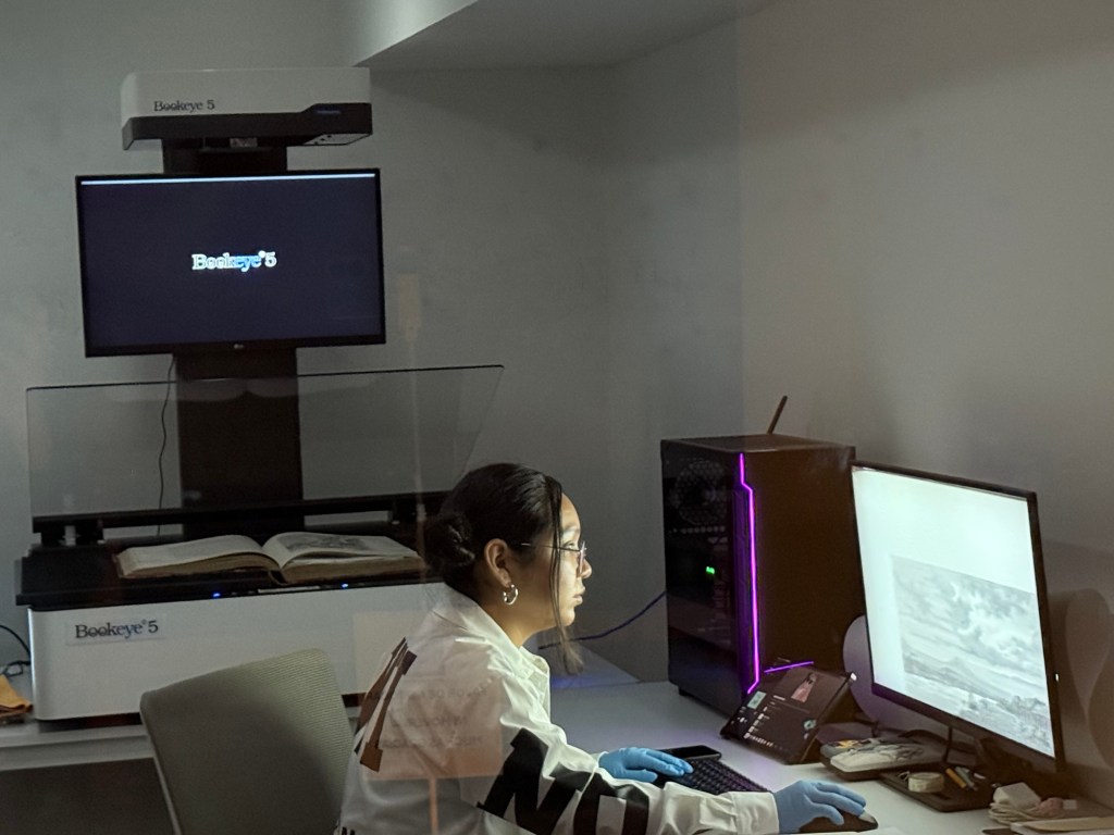 In a small adjacent room they had a special scanner and a woman who was scanning an old book.