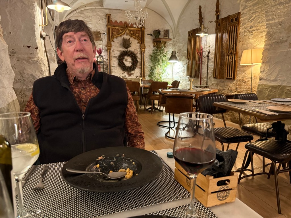 For dinner we walked to a nearby cheese restaurant. It is a rainy Sunday night so we had the place to ourselves. The food, wine and ambiance were very special.