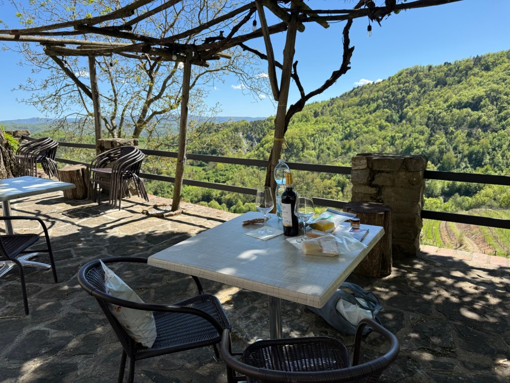 But eventually we made it. We felt very proud of ourselves and had a picnic on the terrace when we got back to the hotel. We even had a nice talk with the owner of the winery where we are staying.