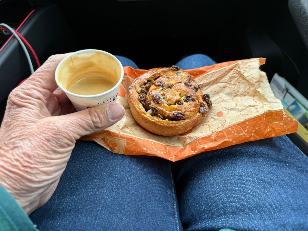 My pain au raisin and coffeeWe also bought a baguette