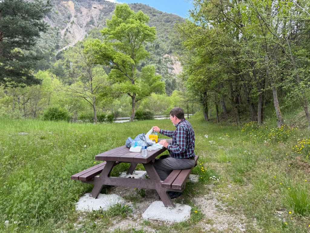 Breakfast in Saint Martin Vésubie before we leftThe Vésubie River in RoquebillièrePicnic lunchMas Tulipe de Soie. Our room is on the leftRelaxing outside our roomLife is good!The chicken coop