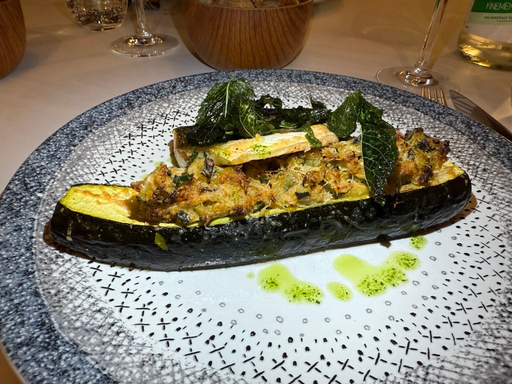 Sea Bass and zucchini stuffed with crab and artichoke creamWe shared a desert – strawbefrry, white chocolate and creamDuke outside the restaurant