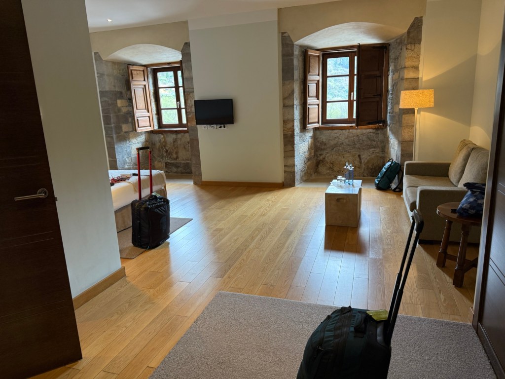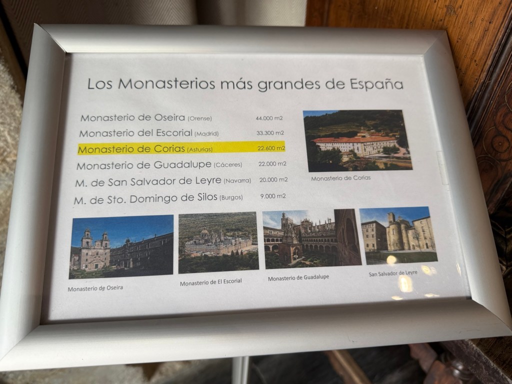 After stopping for groceries, we finally arrived at the Parador of Corias. The monastery’s size is the third largest in Spain. A sign in the lobby says that the Oseira Monastery that we visited yesterday is the largest.