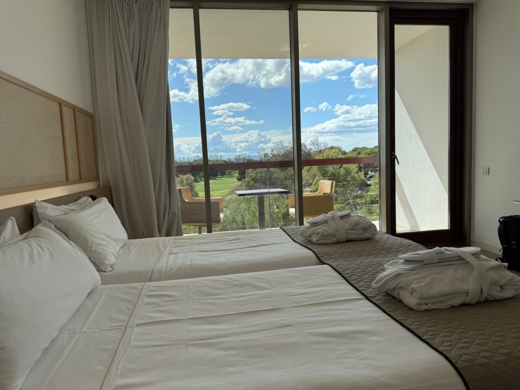 The view of the Mediterranean from the hall outside our room.The view of the golf course from our room.
