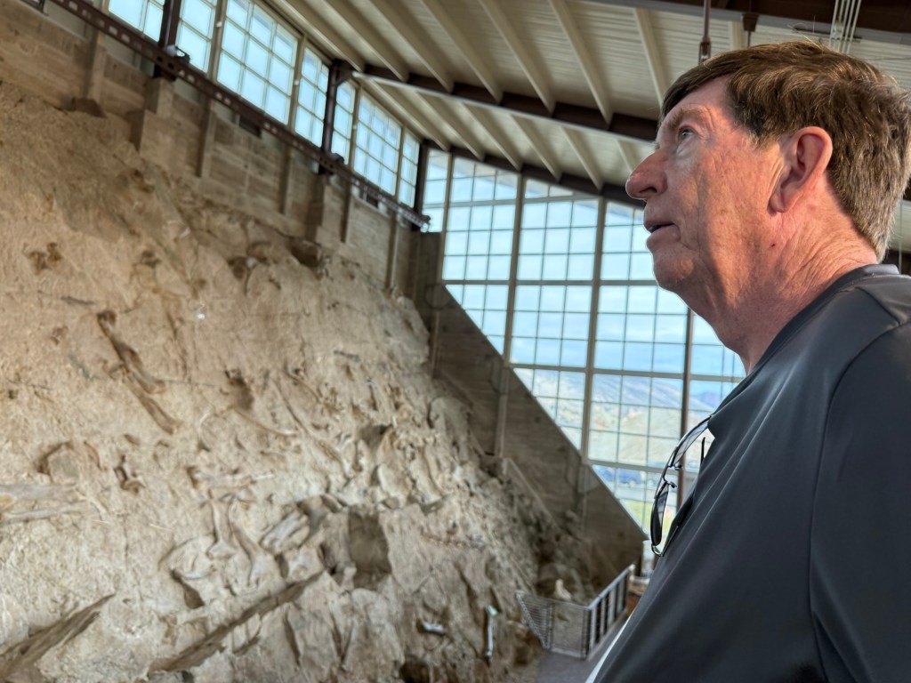 Today we drove across Utah, with a few stretch stops, to Dinosaur National Monument. We parked the car and checked out the Quarry Visitor Center, then took the tram up to the Quarry Exhibit Hall. The Exhibit hall is built right over one of the rock faces with hundreds of fossils still in the rock.