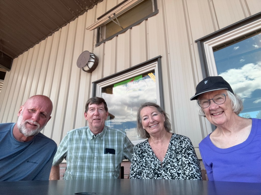 We had a fantastic dinner at the Kinkaider Brewing Company just outside of town. We sat outside. The temperature was perfect and we had a nice view of the lush corn field and green hills in the distance.