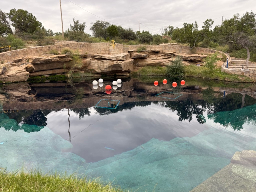This morning, before leaving Santa Rosa, we stopped to see The Blue Hole. It is a spring fed pool almost 80 feet deep. It is used for swimming and scuba diving.