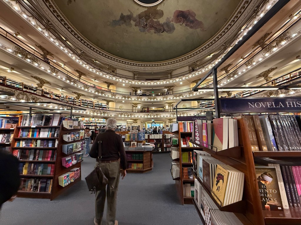 We decided to walk to the Jazz club where we had dinner. On the way Duke totally surprised me by taking us into one of the most beautiful bookstores in the world. El Ateneo is in an old theater and is truly stunning. I was so focused on getting to dinner that I tried to walk right through it so that I wouldn’t delay us. In reality I could have browsed for an hour. But I didn’t. But we did browse a bit.