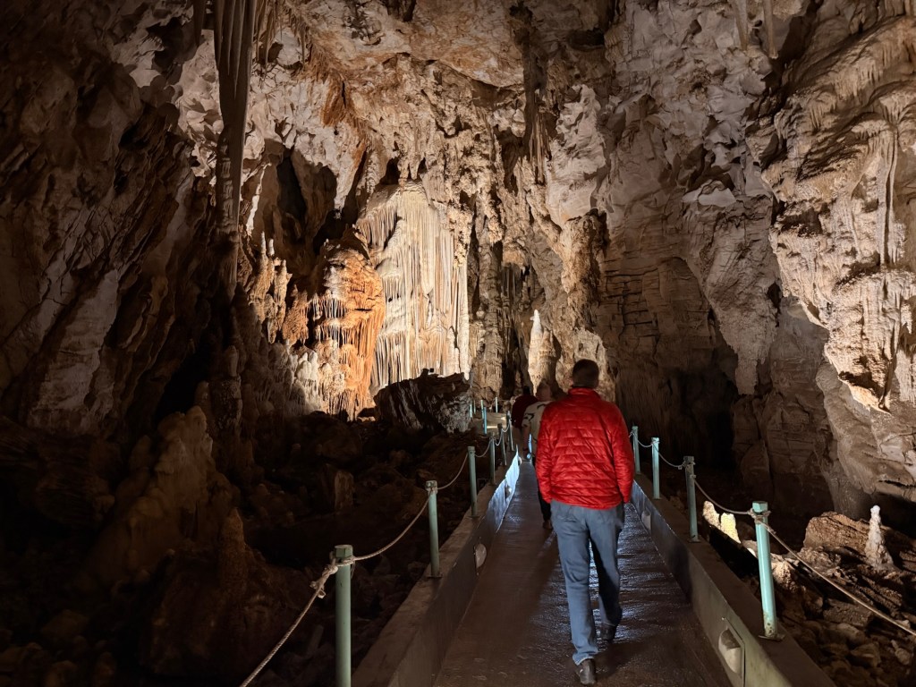 This morning on our way to Moustheni where we are tonight we stopped to tour The Cave of Alistrati. I think it is the most beautiful cave I have ever seen The stalactites and stalagmites and other formation made the cave magical.