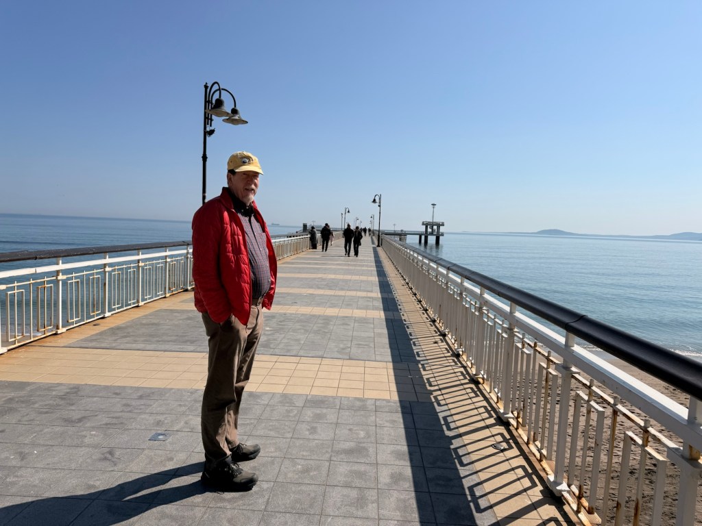 Sun! We had a lovely sunny day today. The high temperature was only 56° but the blue skies and sun made it a very pleasant day. This morning we went for a walk along the coast of the Black Sea.