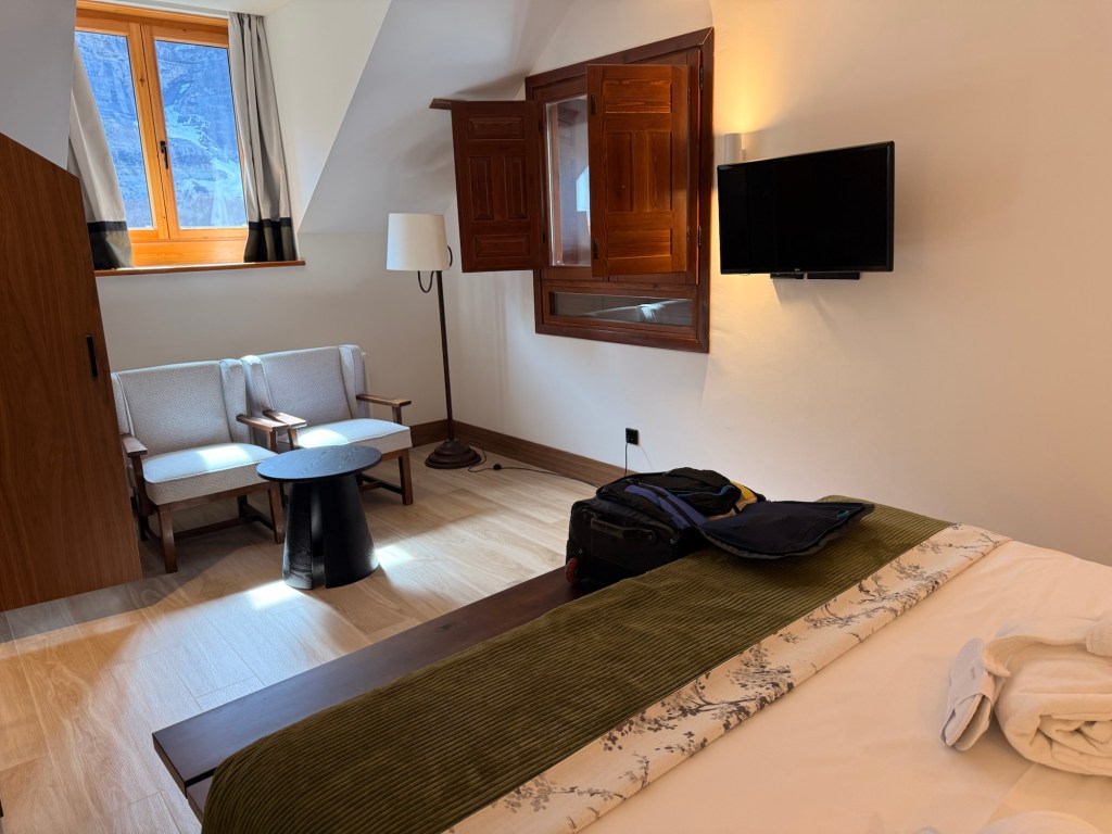 Our drive north today, almost to the French border, was beautiful. It was about three hours. Tonight we are in the Parador of Bielsa. We’ve been here twice before but they have been closed for renovations and we wanted to see the new decor.
