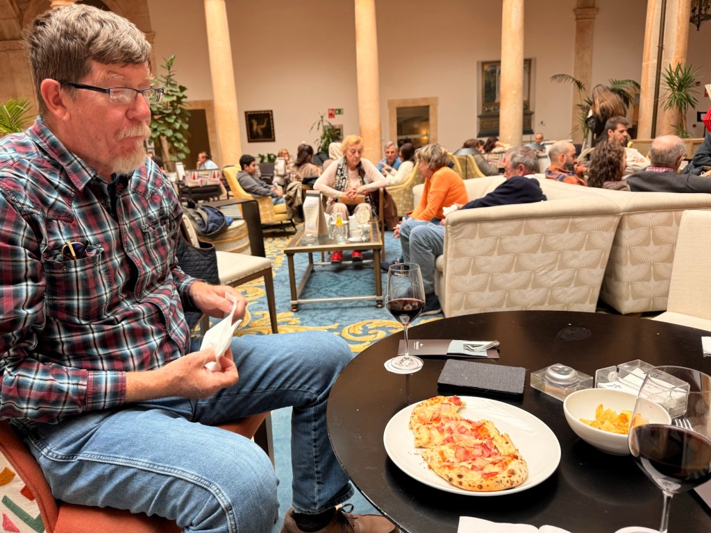 We relaxed in the central courtyard of the Parador. Yesterday, Sunday afternoon, the room was packed. Today, Monday there were less than ten people enjoying the space.