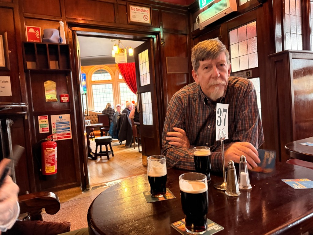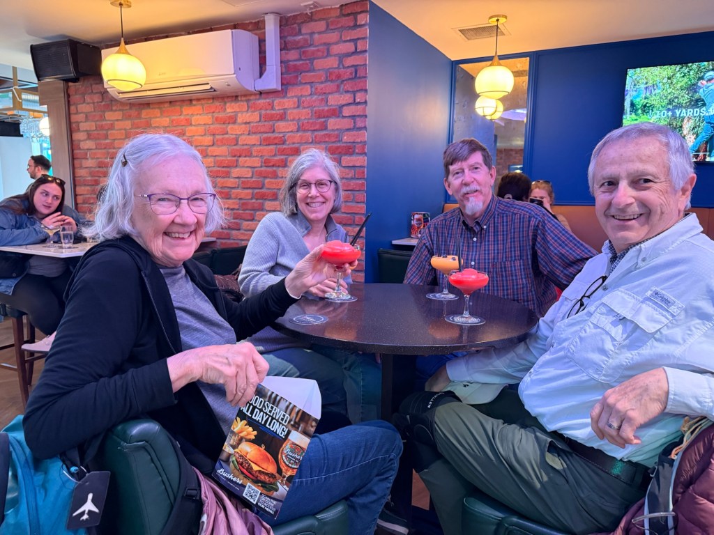 The flight to Dublin was about three hours. From the airport in Dublin we took the Dublin Express bus into the center where we are staying at the Temple Bar Hotel. As we walked up to the hotel Roger and Gayle walked up from the other direction. They had arrived in Dublin a few hours earlier. Our rooms weren’t ready so we they gave us coupons for free drinks next door.