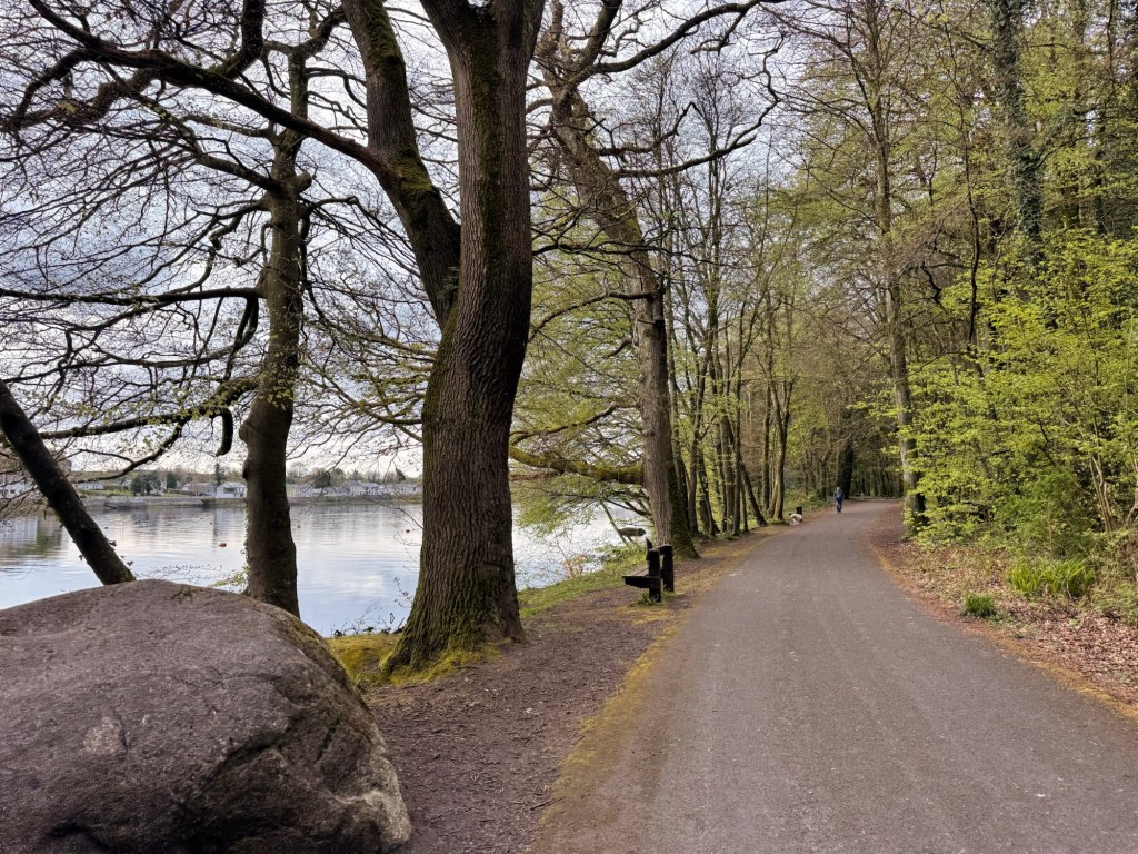 The grounds around the Belleek Castle Hotel were converted into a public park in the 1970s. There is a very nice 3 mile loop trail in the woods along the River Moy. We walked half the trail this morning and half the trail this afternoon.