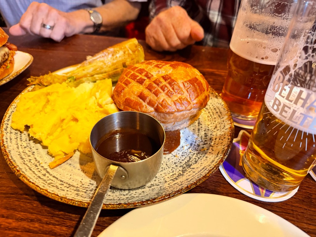 Milner Bar was below street level.Luckily it wasn’t too busy.Duke and I shared the Steak and Ale Pie with buttered mash and charred cabbage wedge.