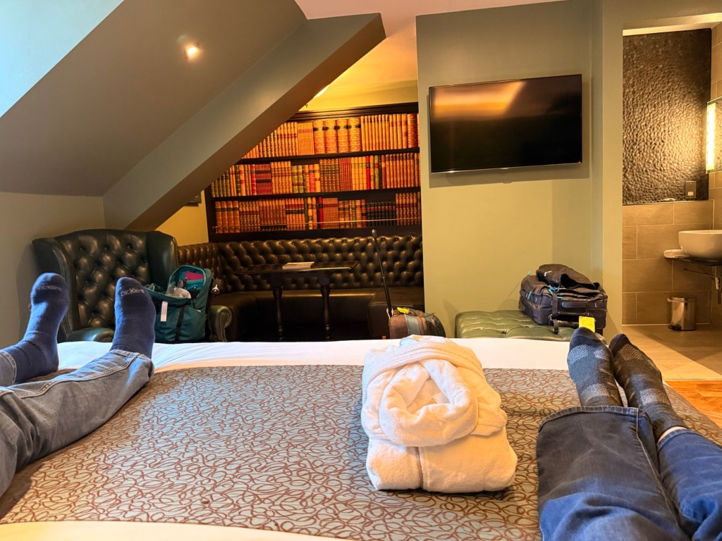 Saturday morning we caught a plane for the short hop from Belfast to Edinburgh. Then we took the Airlink Express bus into the center of Edinburgh. Our rooms at the Le Monde hotel weren’t ready so we left our bags and went to a nearby pub for lunch.