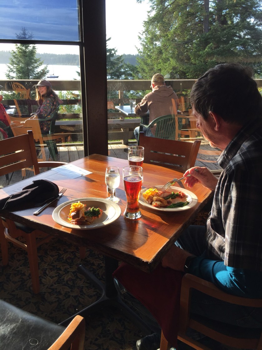 Finally we had salmon and beer for dinner in the lodge overlooking Bartlett Cove. What a perfect day!