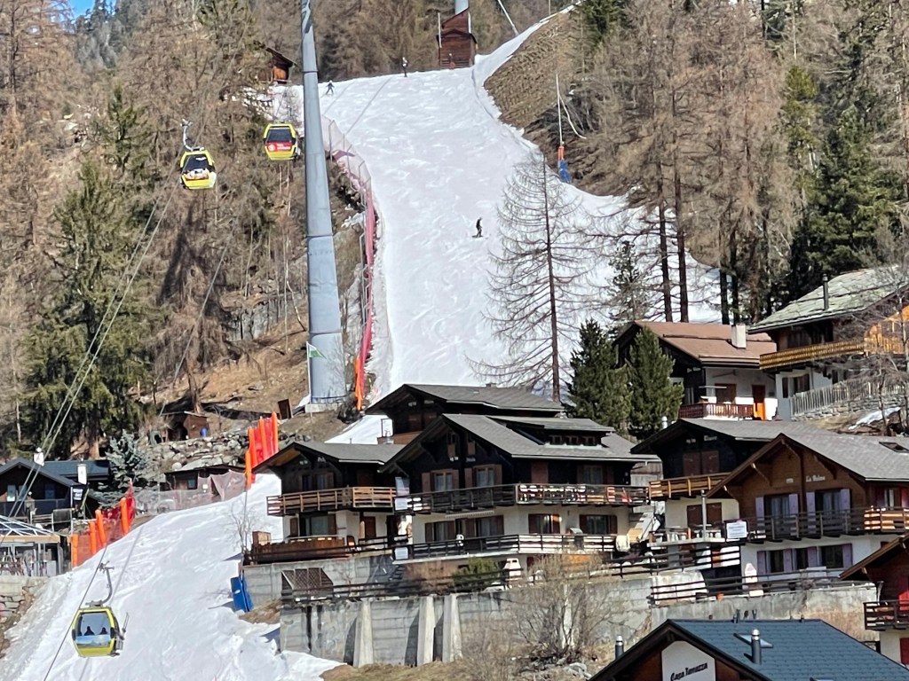 We drove up into the Alps to the ski town of Graechen. We can see the gondola from out hotel. They will still be skiing here for a couple more days.