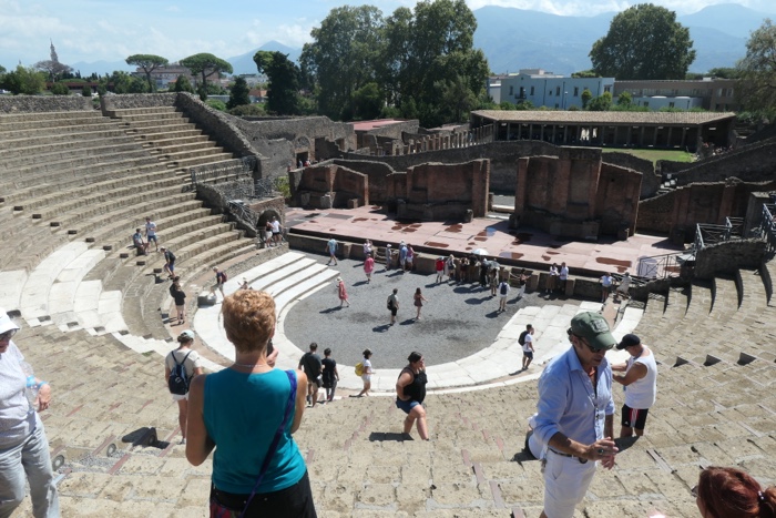 Farther along the coast we came to the Paestum Archaelogical Park. The Park is an ancient town with the remains of three Greek Temples dating from around 550 to 450 BC. We parked and explored the ruins.