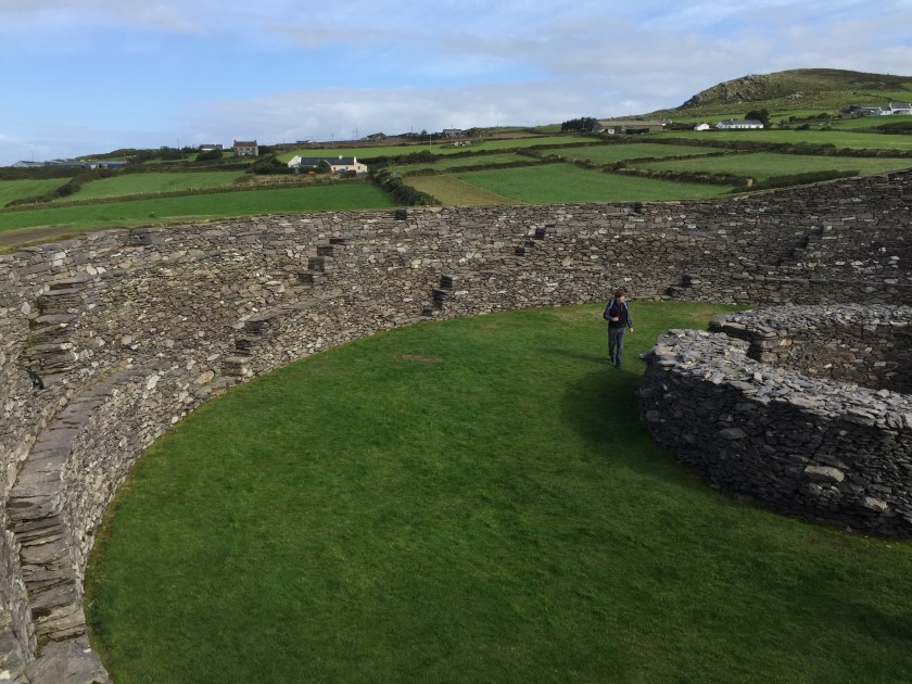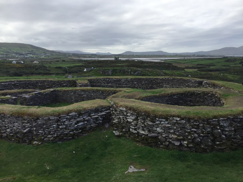 We spent today exploring a wide variety of places not far from where we are staying in the south west corner of Ireland. We started out exploring by visiting two Stone forts Cahergal and Kilovarnoge. They were built more than a thousand years ago. Nearby we stopped at the ruins of Ballycarbery Castle.