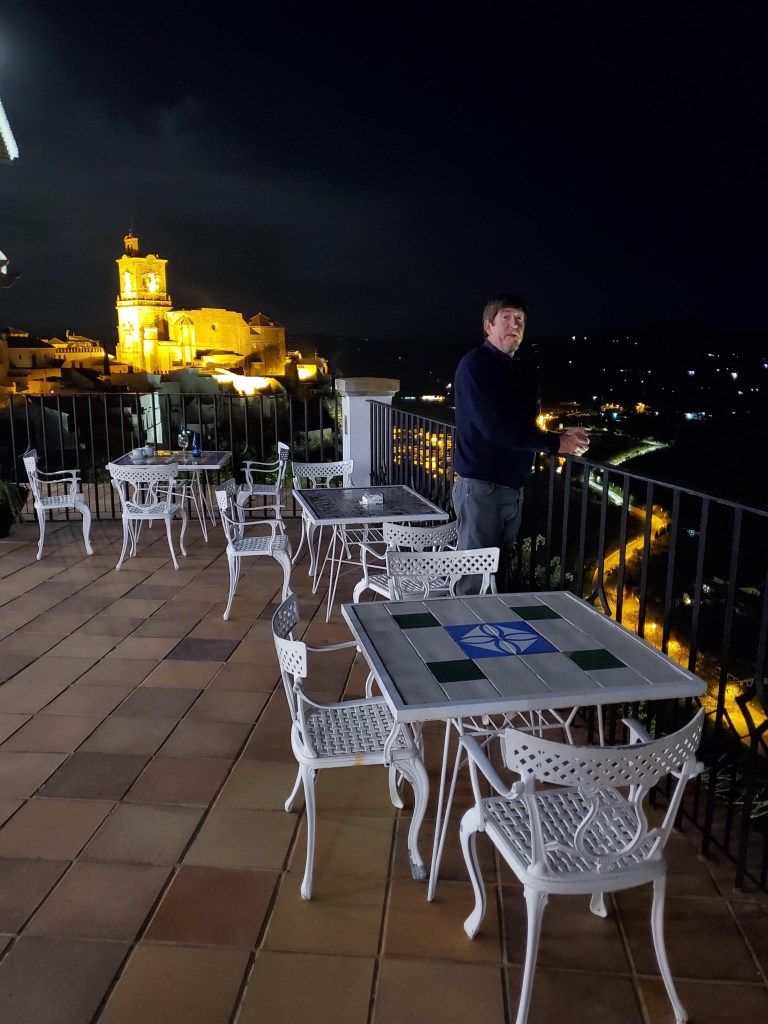 Tonight we are staying in the Parador de Carmona a little east of Sevilla. Before we left Arcos de la Frontera this morning we walked around the town. We checked out a view point and a church.