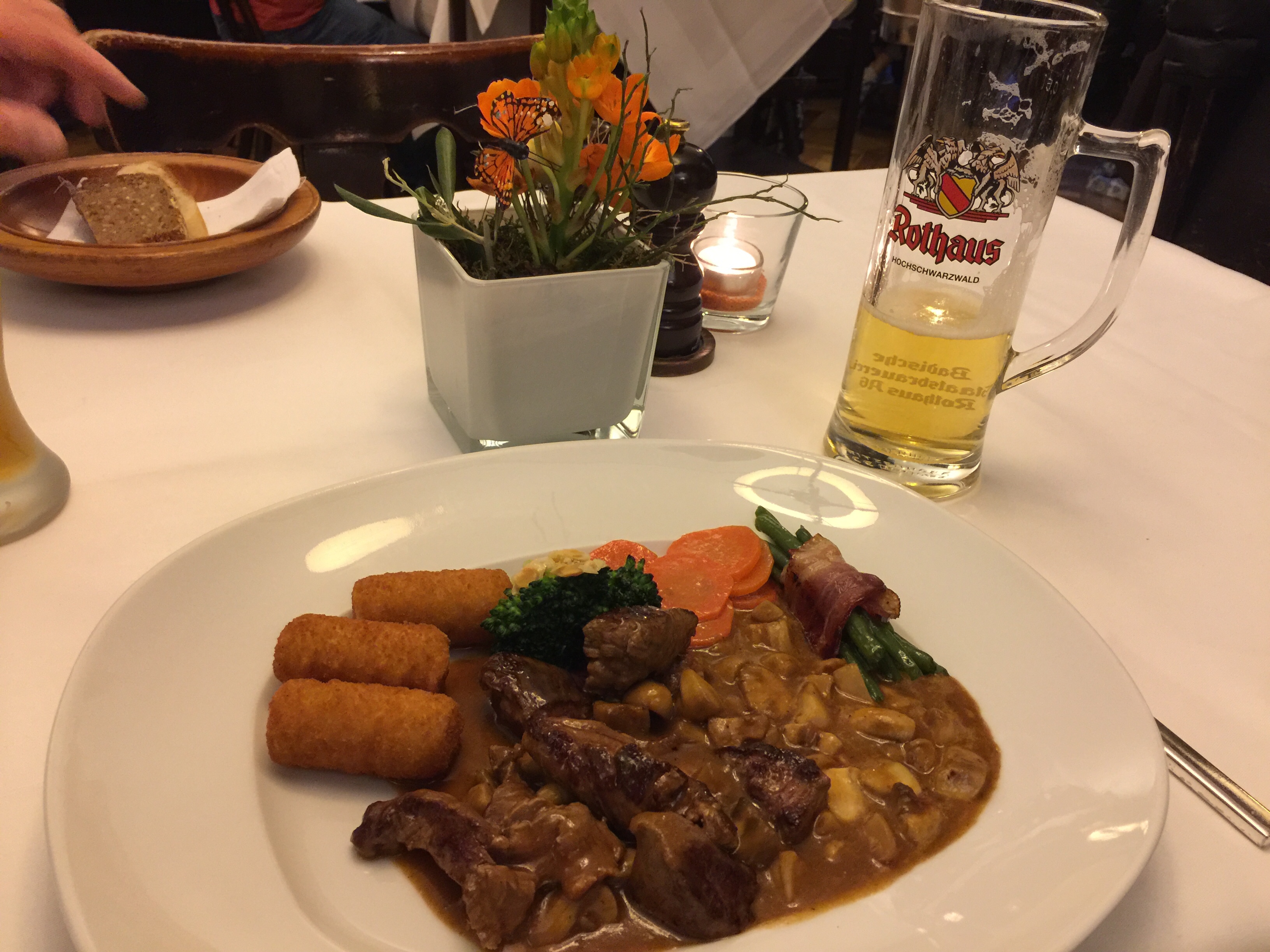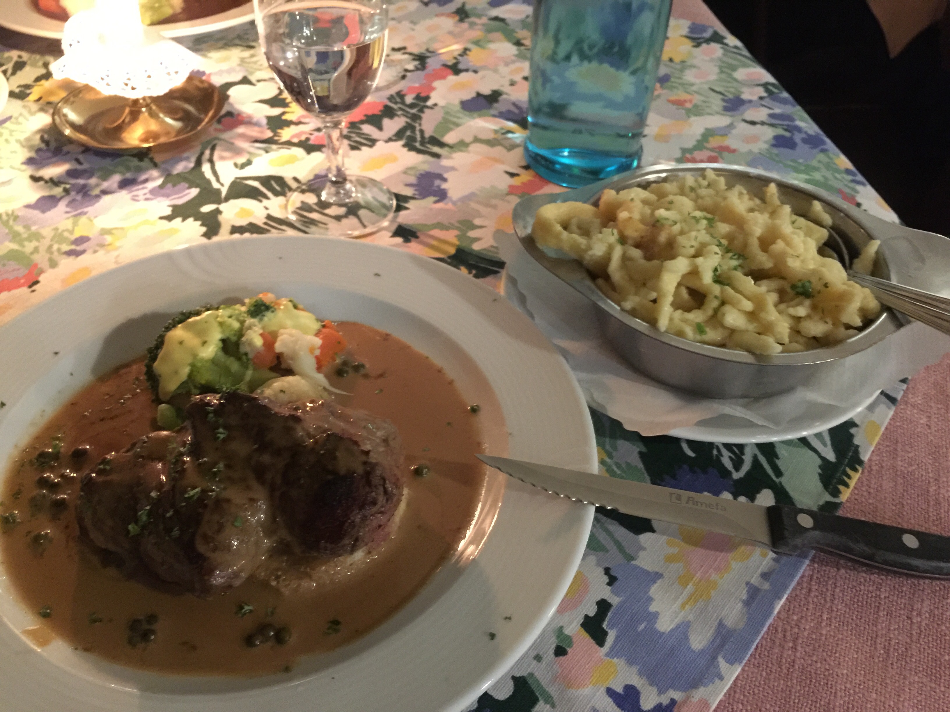 We ate dinner at our hotel. It was all delicious. Although we are in a wine region we had to have beer with our dinner since this is our last night in Germany.